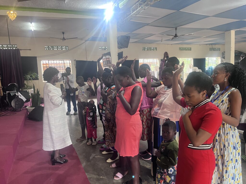 Pastor Prossy Sanyu then shared a 30-minute message about Jesus Christ, encouraging the community and praying with them.
